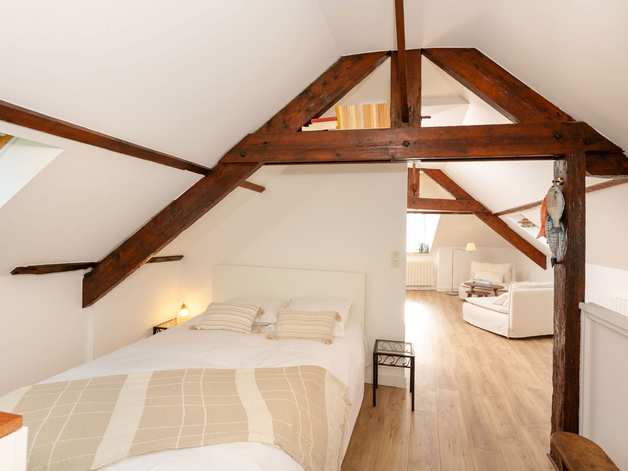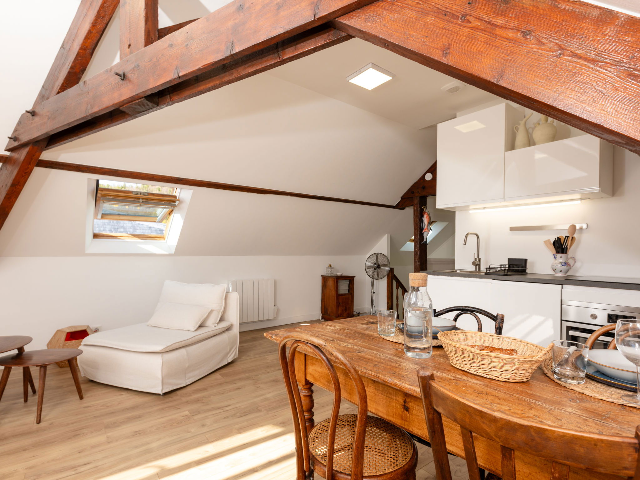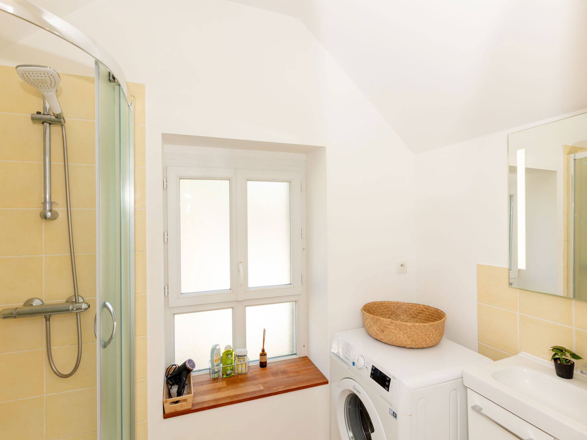 1-room studio 30 m2 on 2nd floor. Comfortable and beautiful furnishings: living/sleeping room with 1 french bed (1 x 140 cm, length 190 cm). Open kitchen (oven, dishwasher, 2 induction hot plates, toaster, kettle, electric coffee machine). Shower/WC. Electric heating. Beautiful view of the sea. Facilities: washing machine, hair dryer. Internet (WiFi, free). Please note: smoke alarm. Offer by a private individual according to Art. 155, IV of CGI.